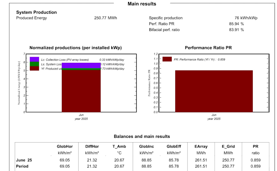 Uma de suas principais funcionalidades é o cálculo do Performance Ratio (PR), um indicador fundamental para avaliar a eficiência real do sistema em comparação ao seu potencial teórico. O PVsyst considera variáveis como irradiação solar, temperatura ambiente, orientação dos módulos, perdas elétricas e sombreamentos, oferecendo uma previsão detalhada da produção de energia ao longo do tempo.